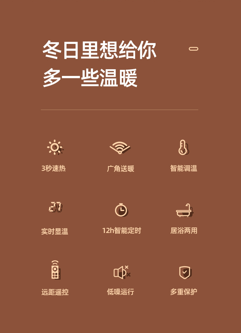 石墨烯+PTC陶瓷发热 12H智能定时 ??毓δ?nbsp; 加湿不干燥