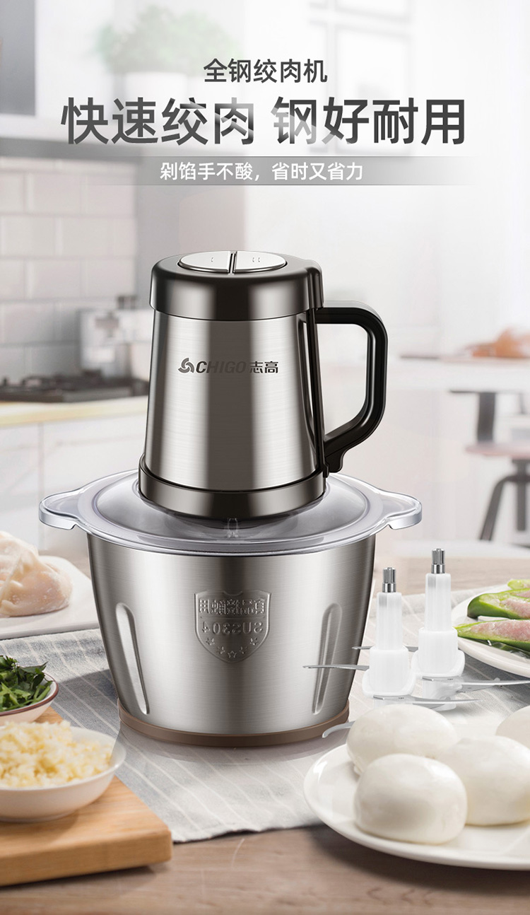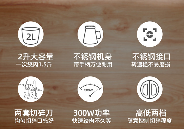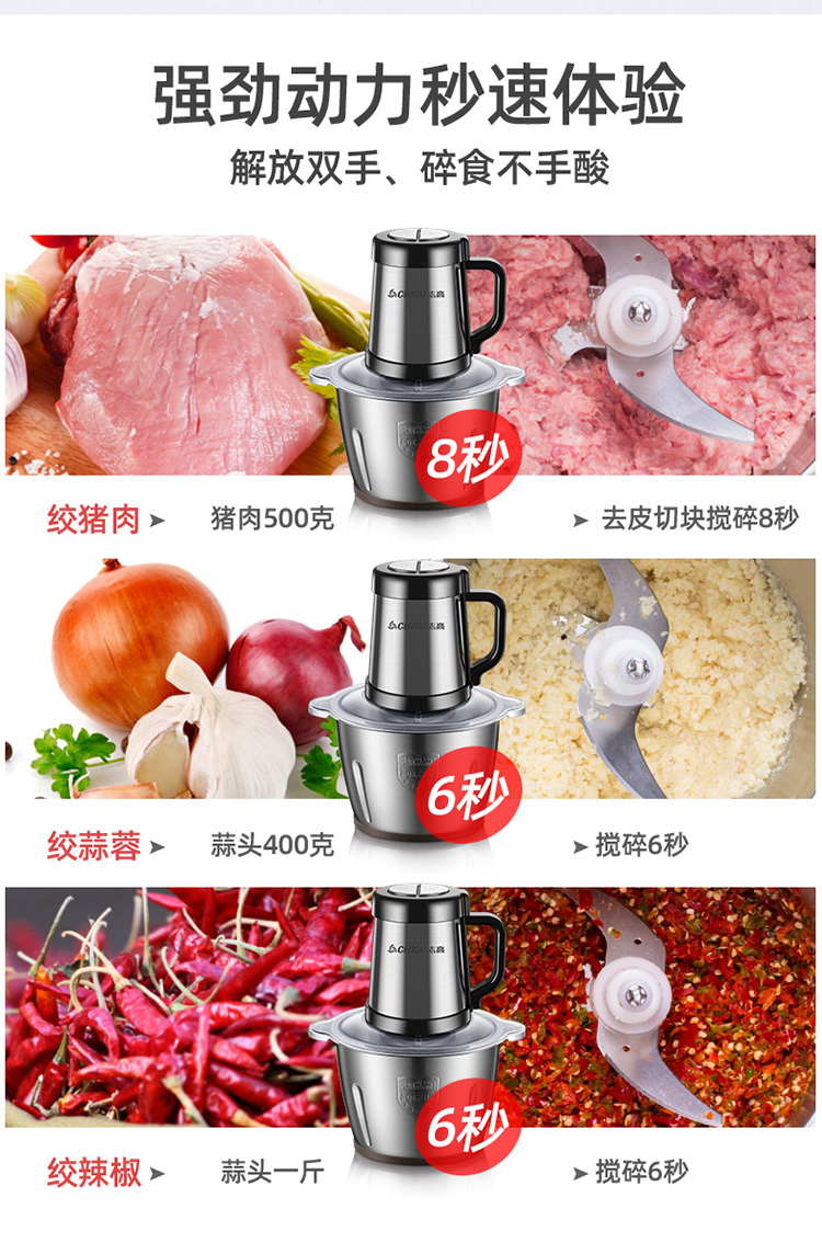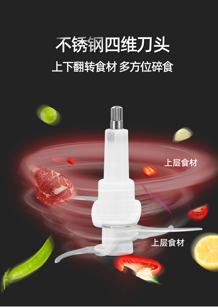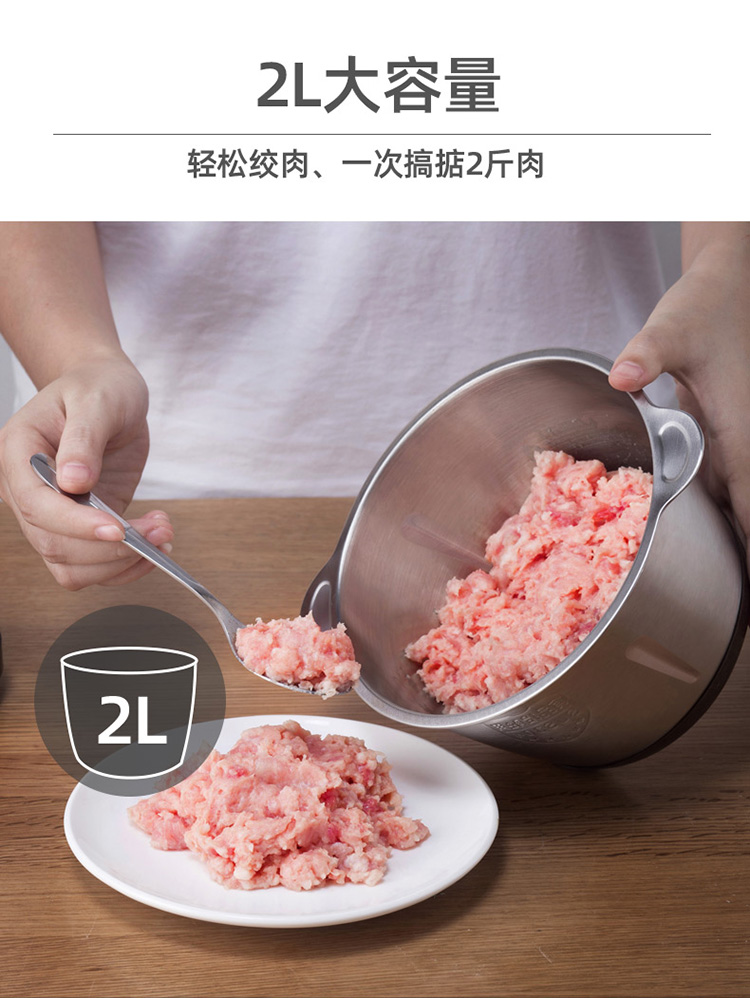升级防滑手柄/配2副原装刀头/8秒碎肉/钢好耐用/2L大容量/可拆卸易清洗/快慢两档