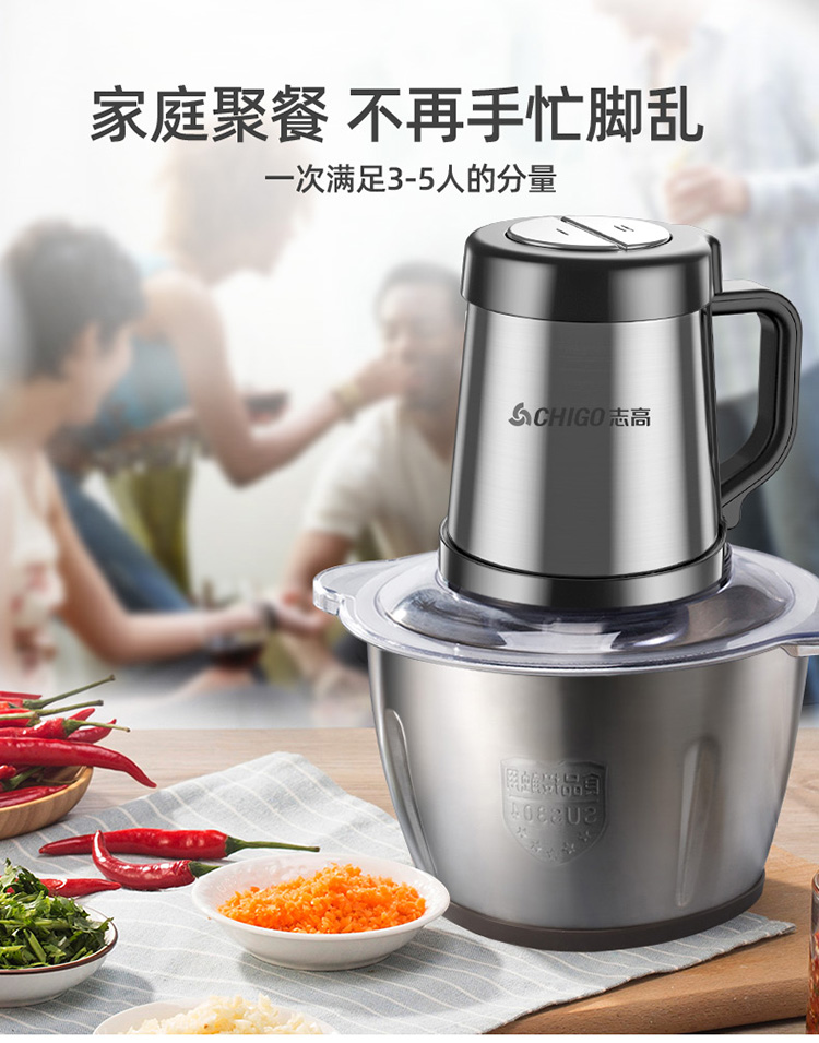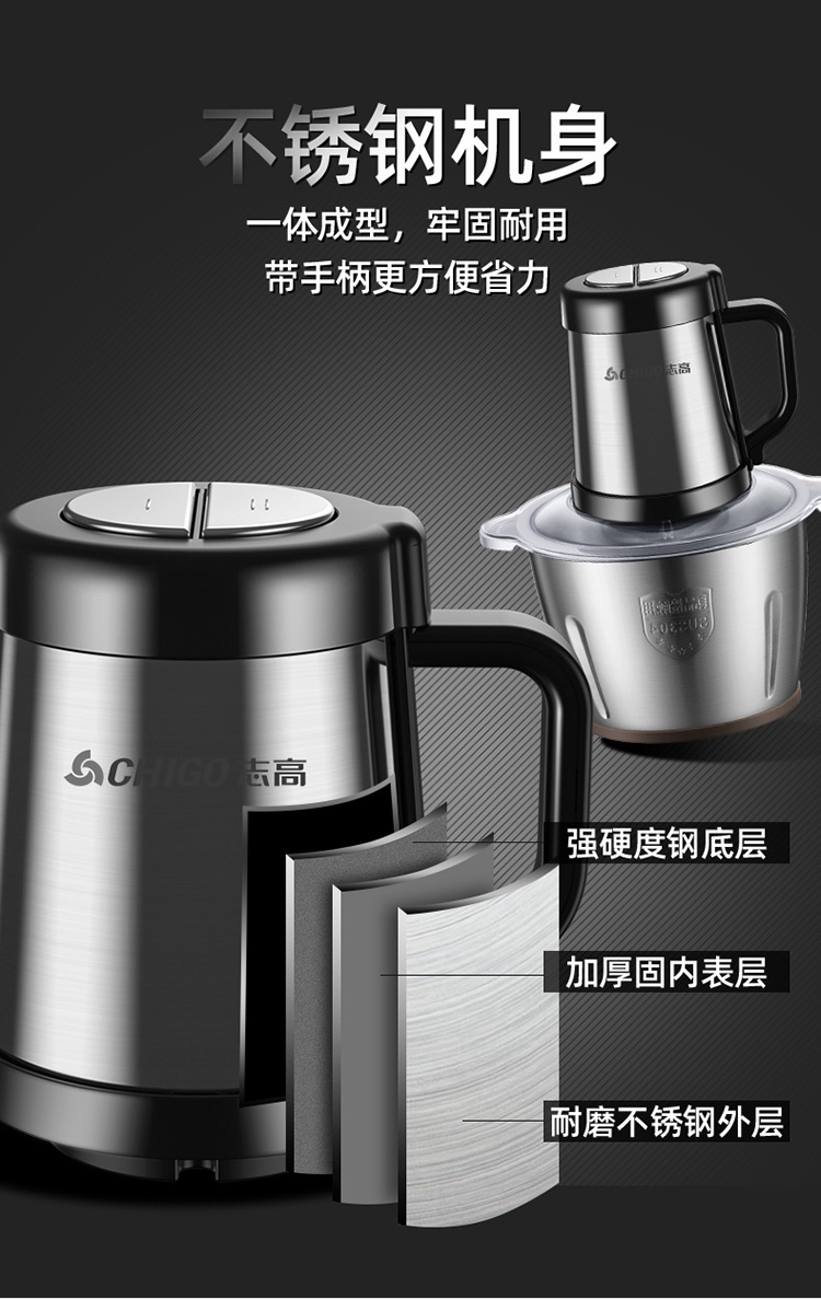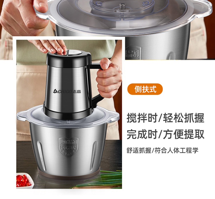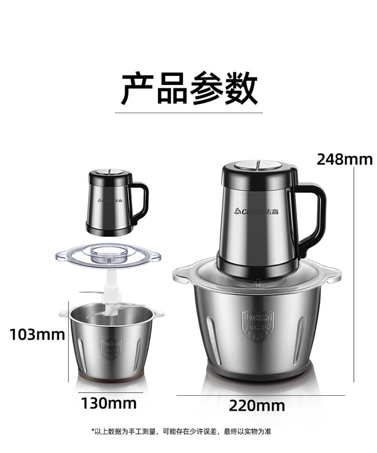 升级防滑手柄/配2副原装刀头/8秒碎肉/钢好耐用/2L大容量/可拆卸易清洗/快慢两档