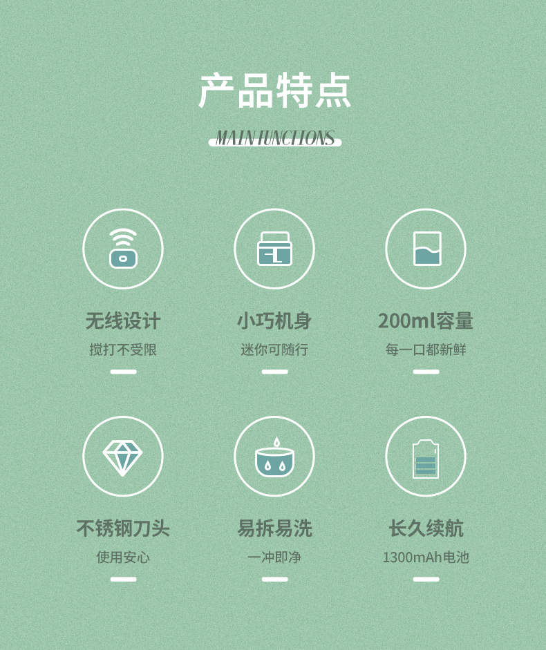 USB充电/长久续航/200ml容量/无线设计/不锈钢刀头
