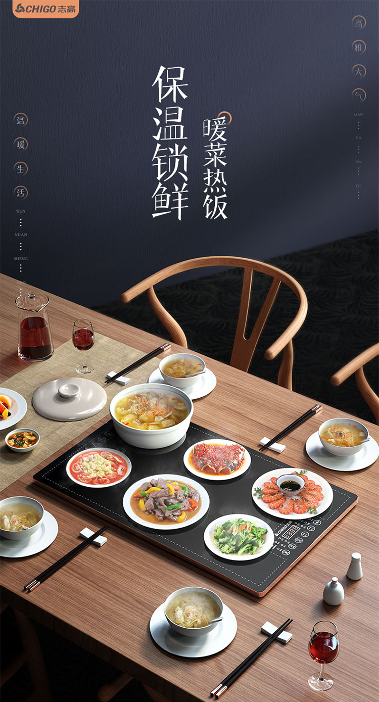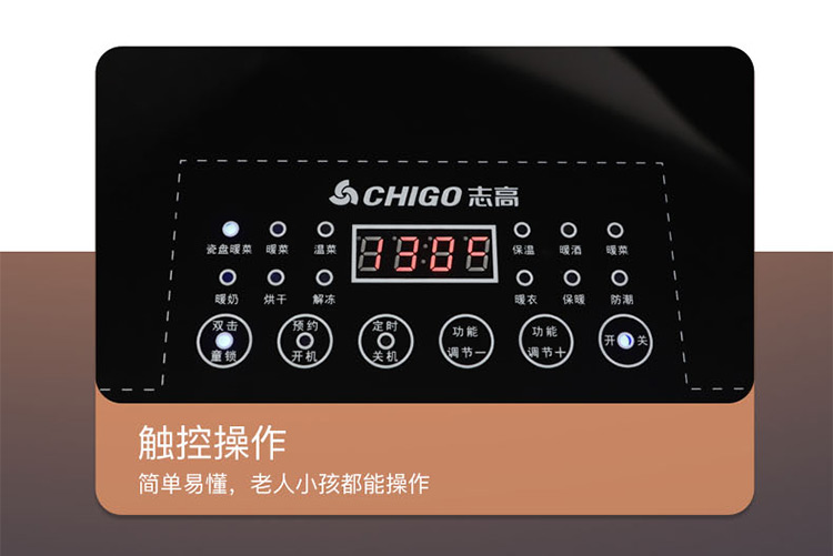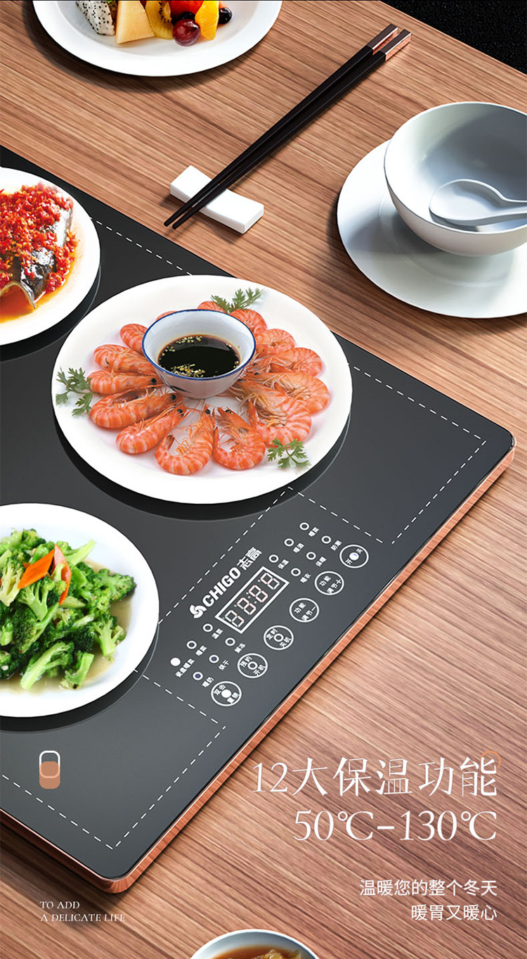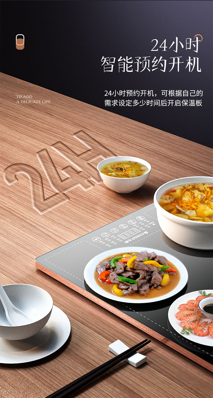 50℃-130℃多档温控/12大保温功能/定时预约/不挑餐具/耐高温面板/智能恒温/智能触屏/童锁设计