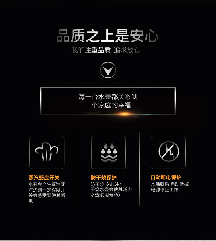 自动断电保护,不锈钢壶体,304不锈钢内胆