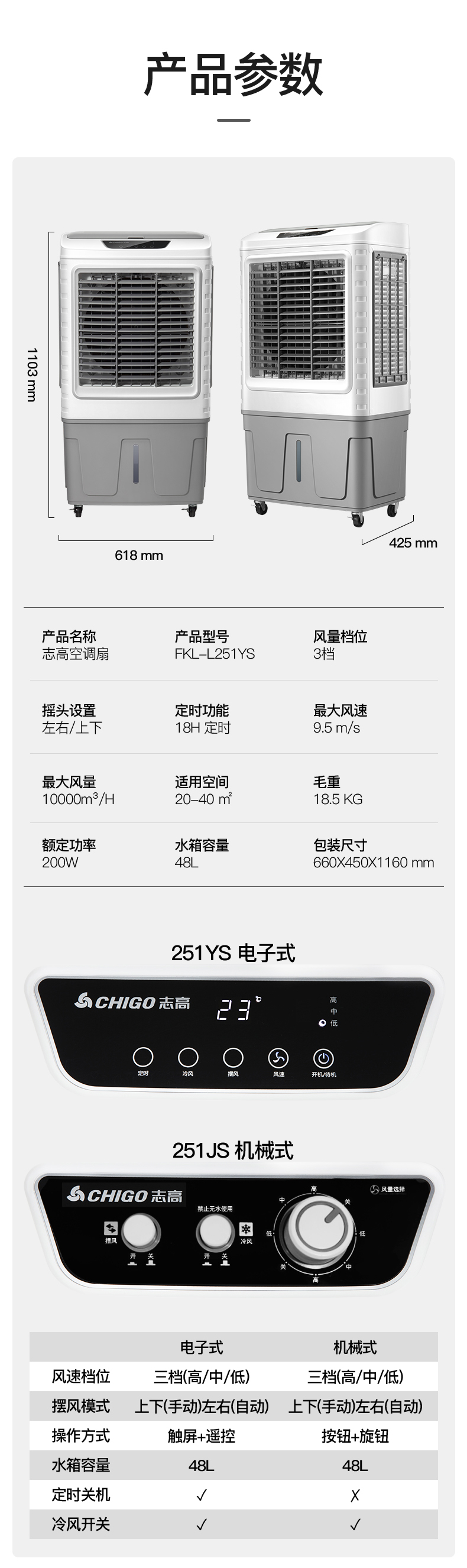 快速降温,三档风速,48L大水箱