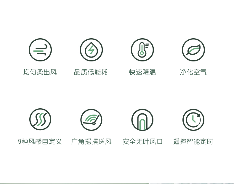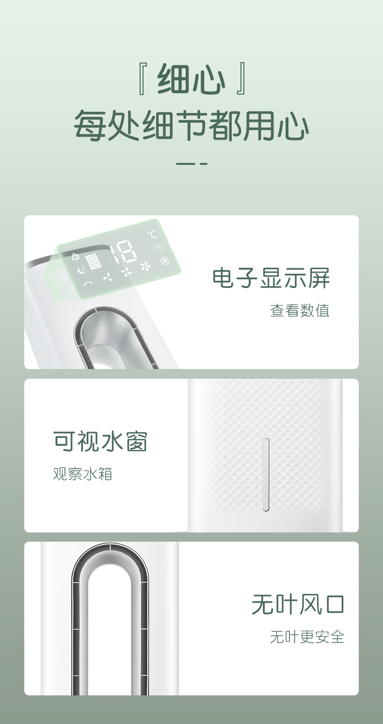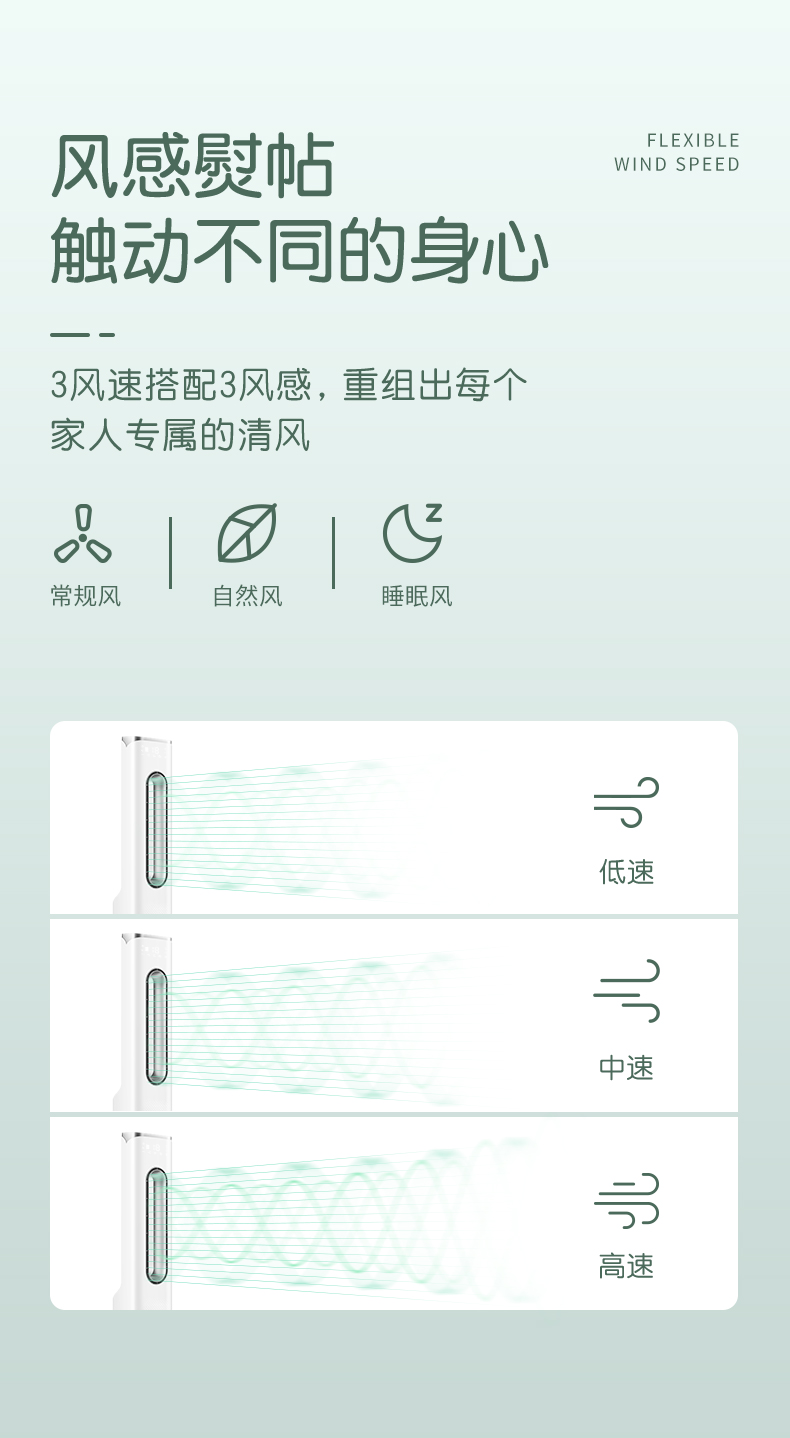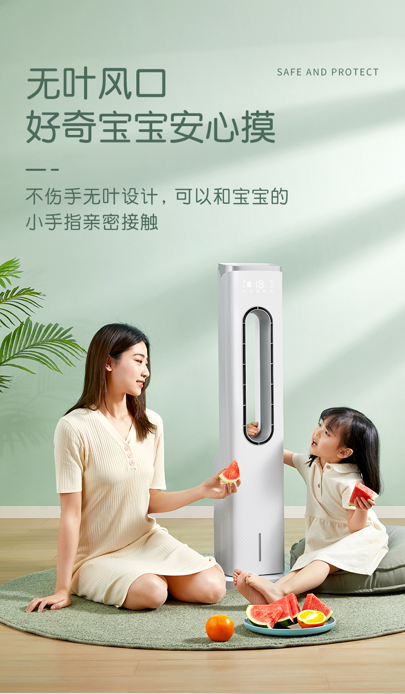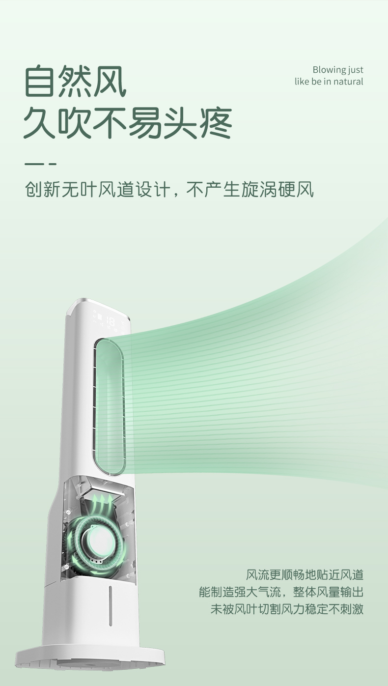 安全无叶风口,9中风感自定义,广角摇头送风